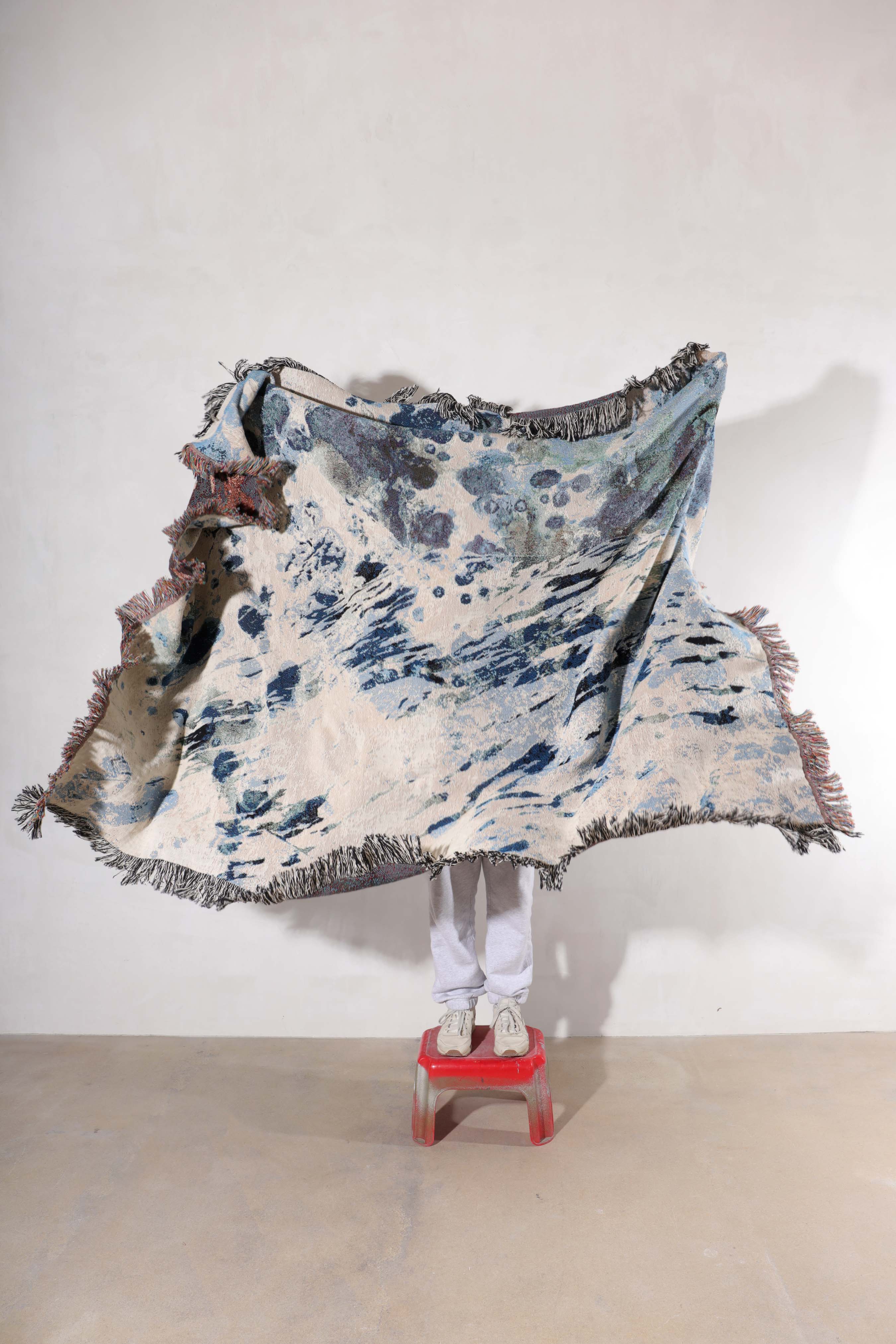 Ces couvertures en coton sont inspirées par mon amour des textiles et des matériaux organiques. À travers le tissage, mes images originales sont transformées et traduites dans une palette de couleurs plus douces, créant une atmosphère confortable et adaptée aux intérieurs.