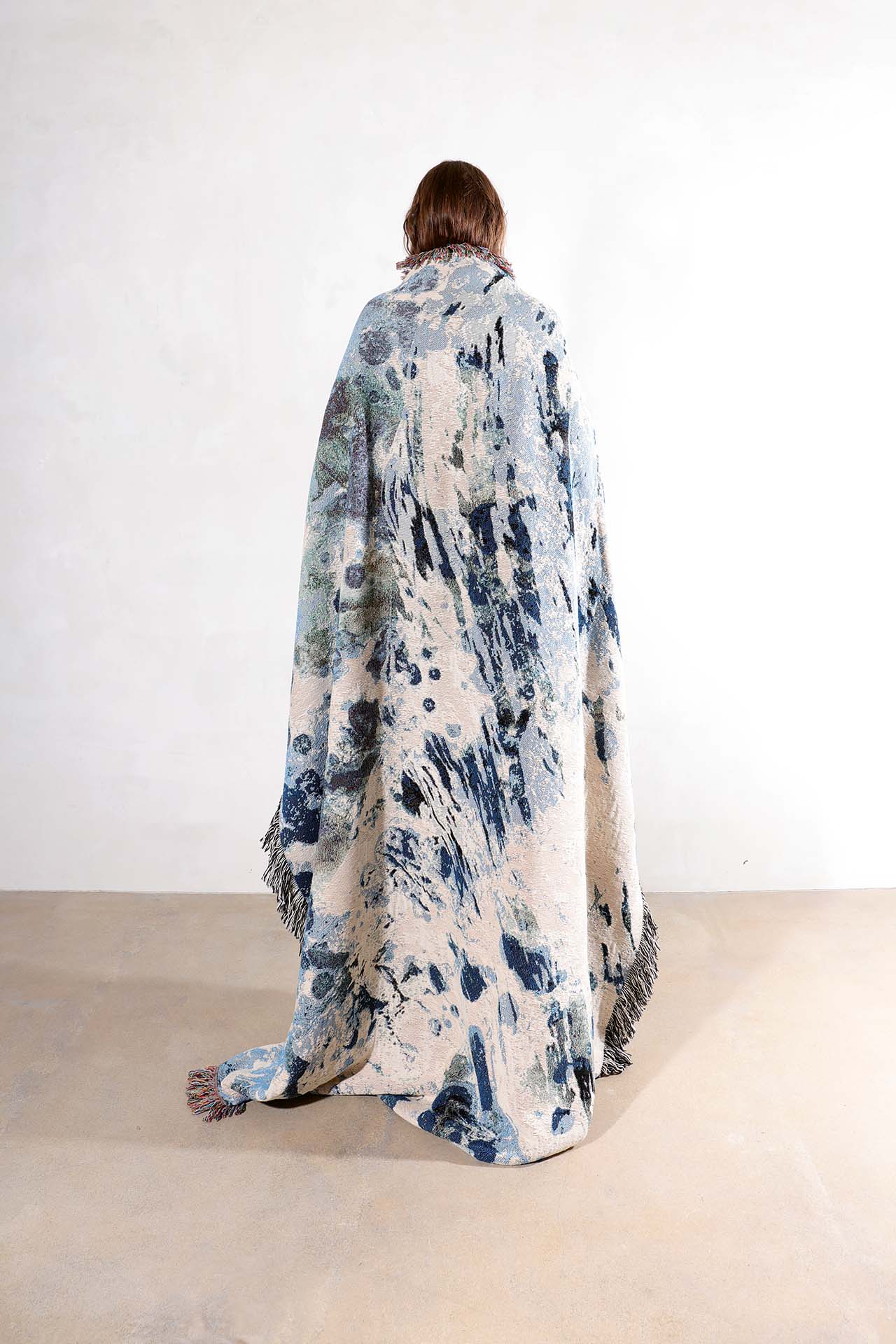 Ces couvertures en coton sont inspirées par mon amour des textiles et des matériaux organiques. À travers le tissage, mes images originales sont transformées et traduites dans une palette de couleurs plus douces, créant une atmosphère confortable et adaptée aux intérieurs.
