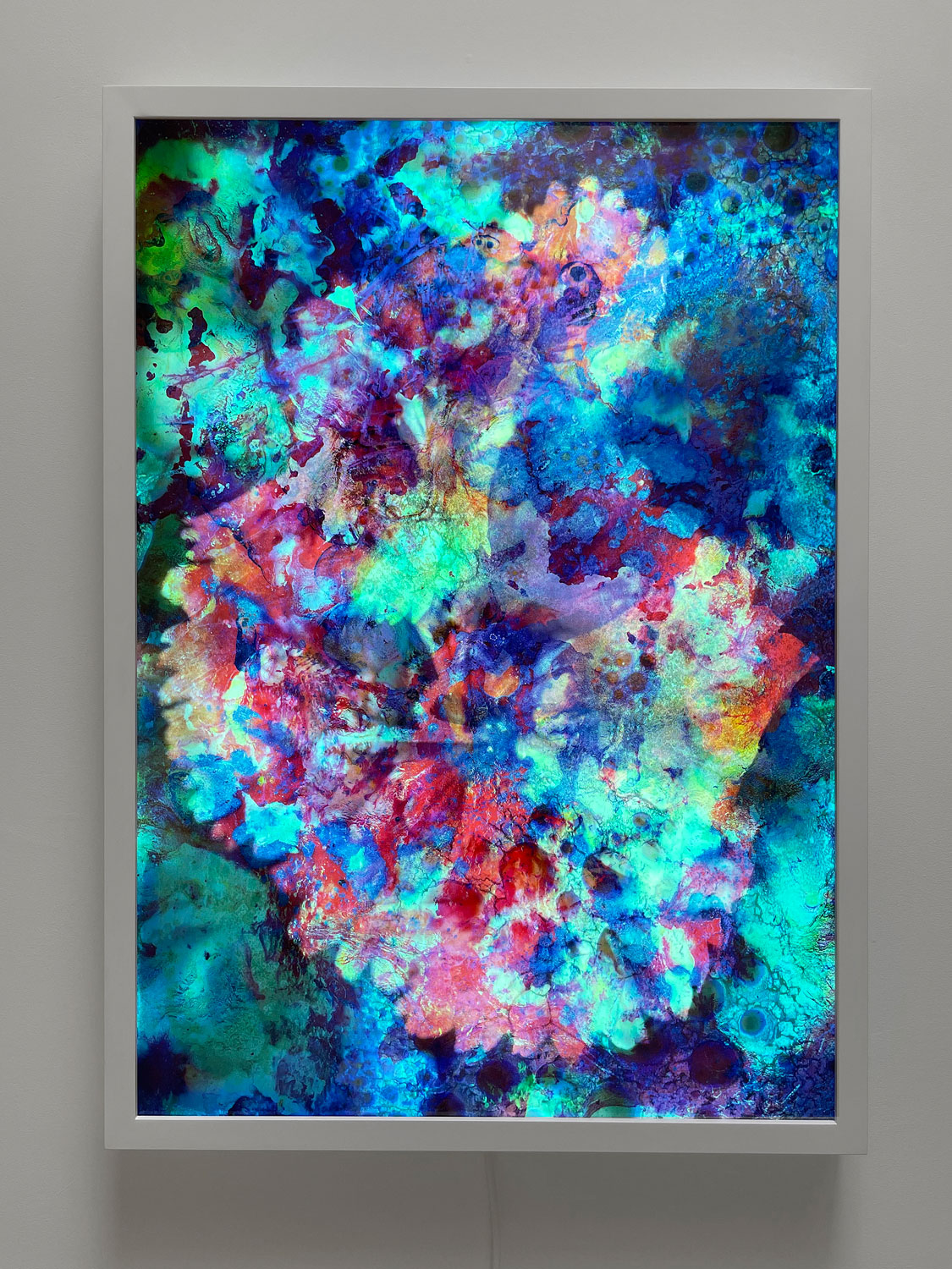 70 x 100 cm, Dodeka Inkjet prints on transparent films, polarised film, lightbox with dimmer
