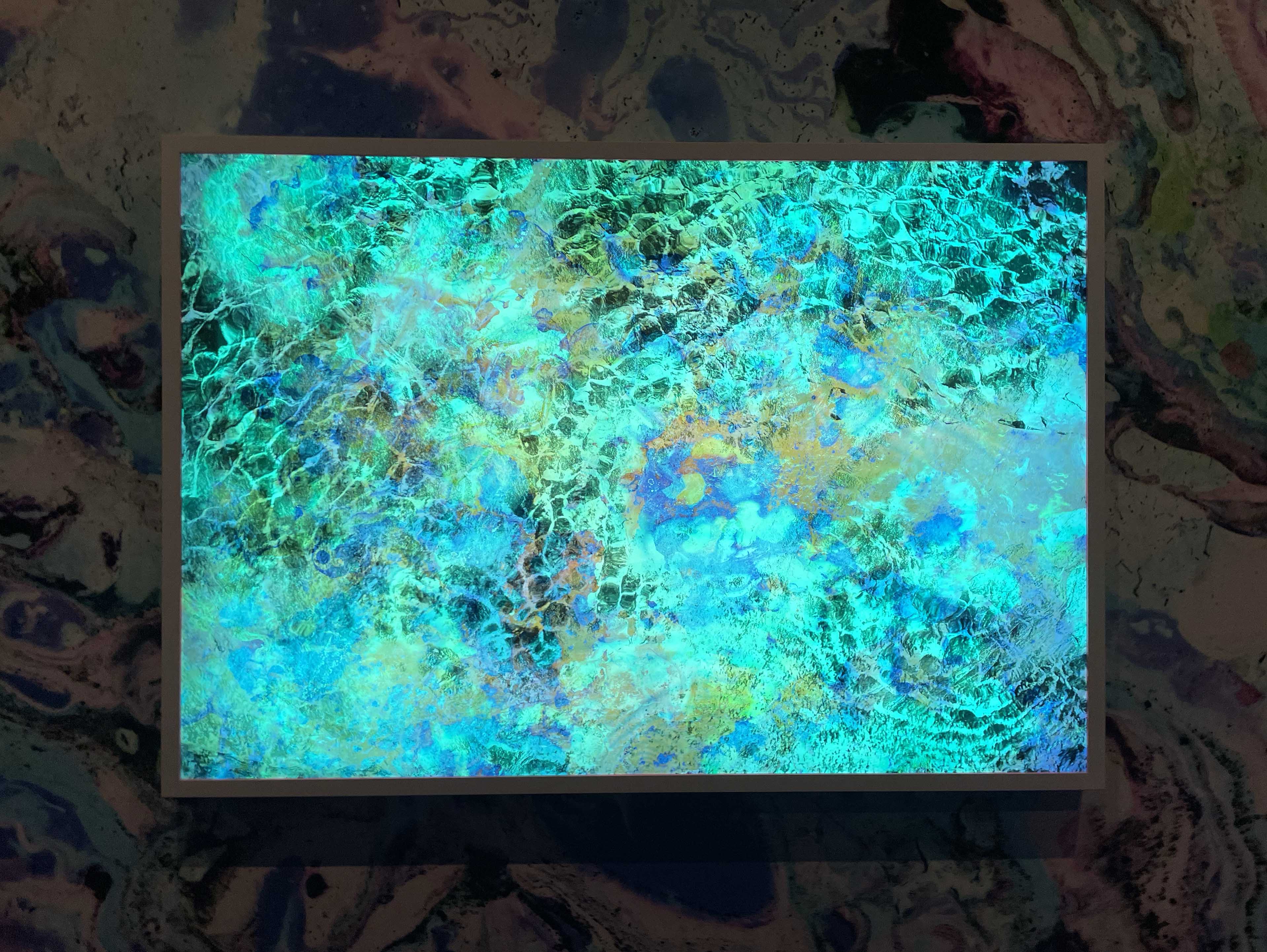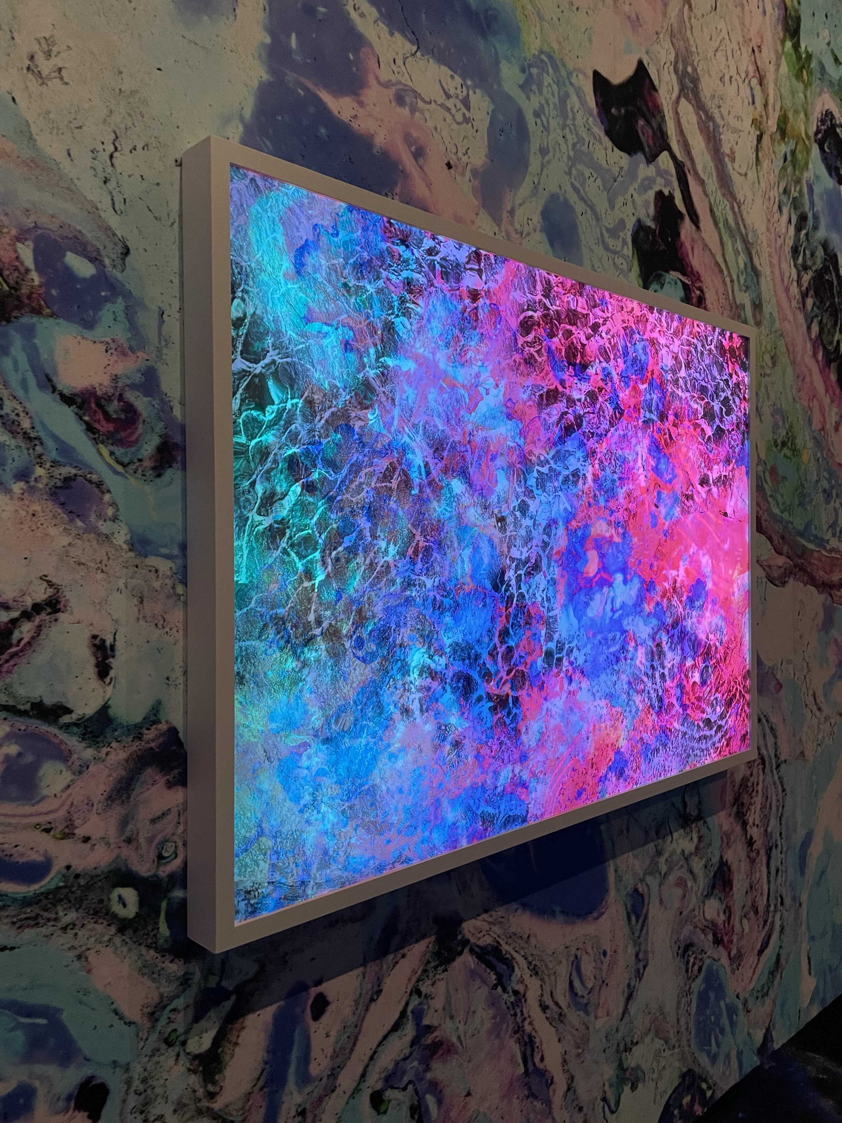 110 x 160 cm, Inkjet print on transparent films, polarised film, lightbox frame with modulator