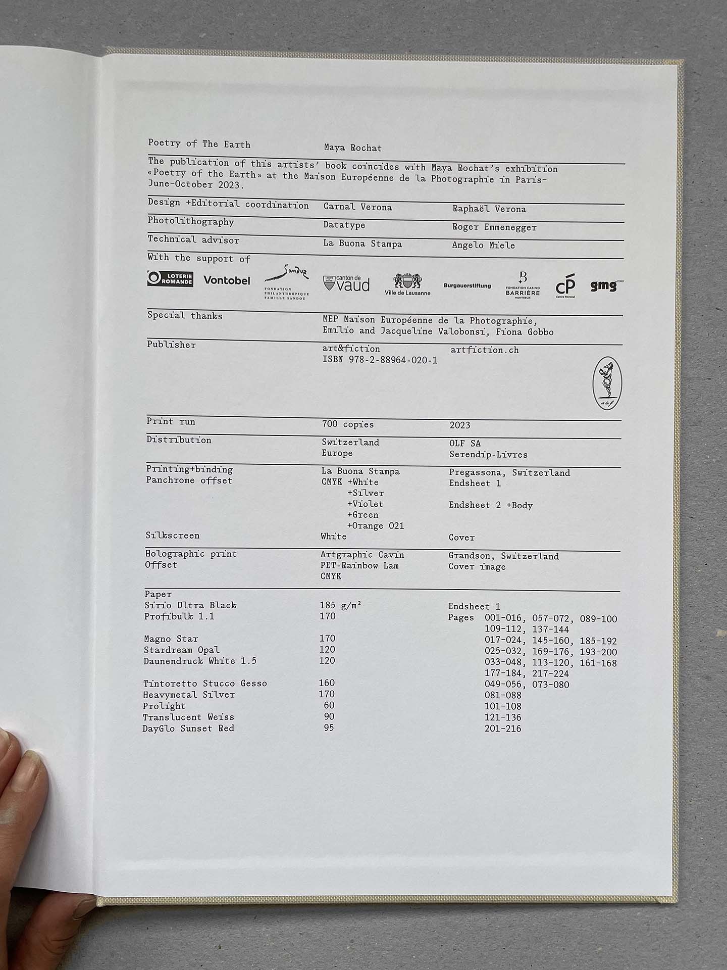 POETRY OF THE EARTH relies on the experimentation of printing technologies. The sensuality of the material then invites itself on the pages of the book, expressing the poetry of the language of printed arts.