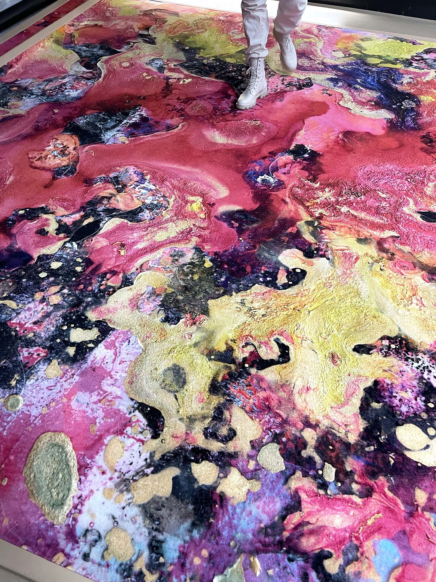 The dimensions of the carpets are fully customizable, and they are printed on demand.