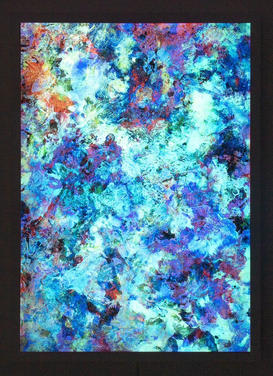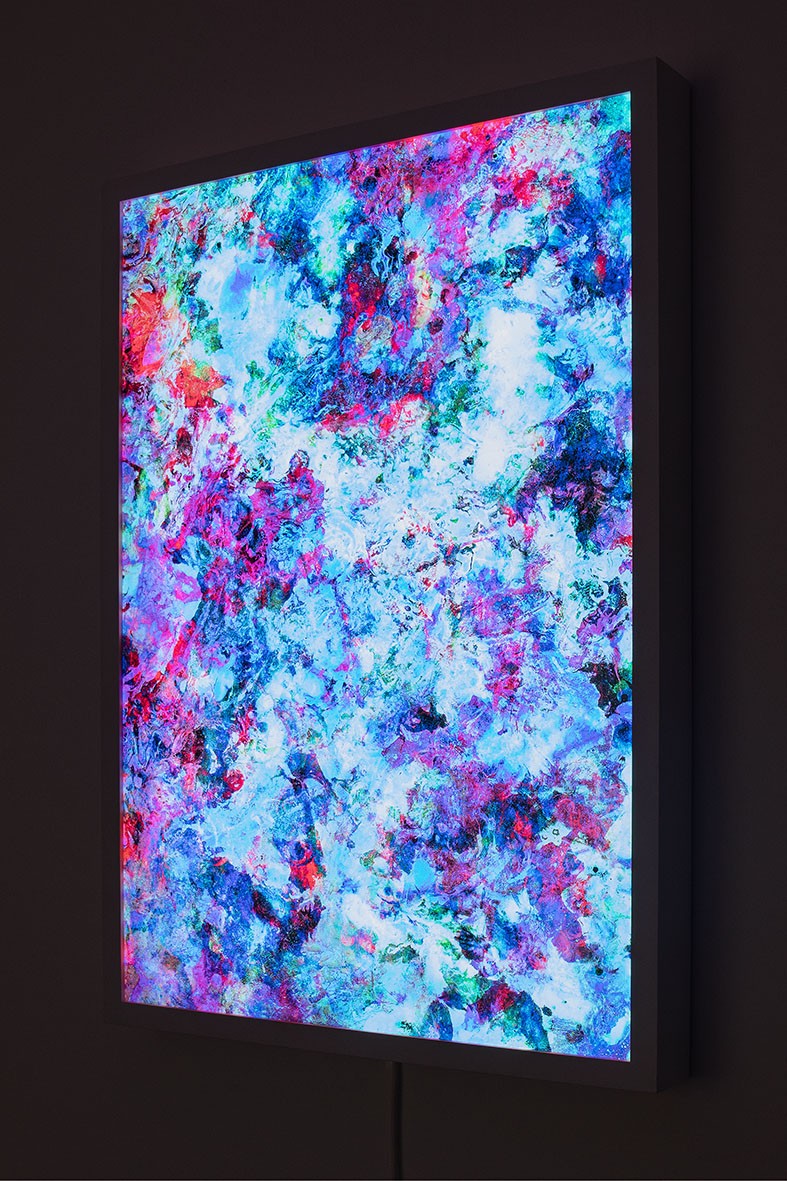 70 x 100 cm, Doddeka inkjet print on silver paper, lightbox frame with dimmer and light modulator, Unique