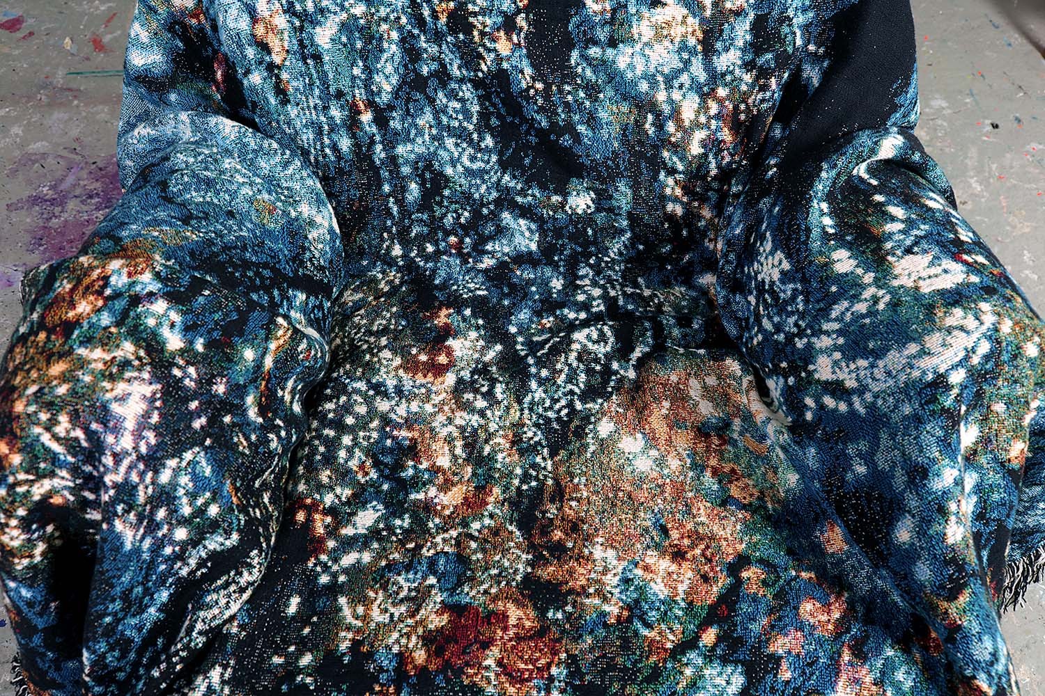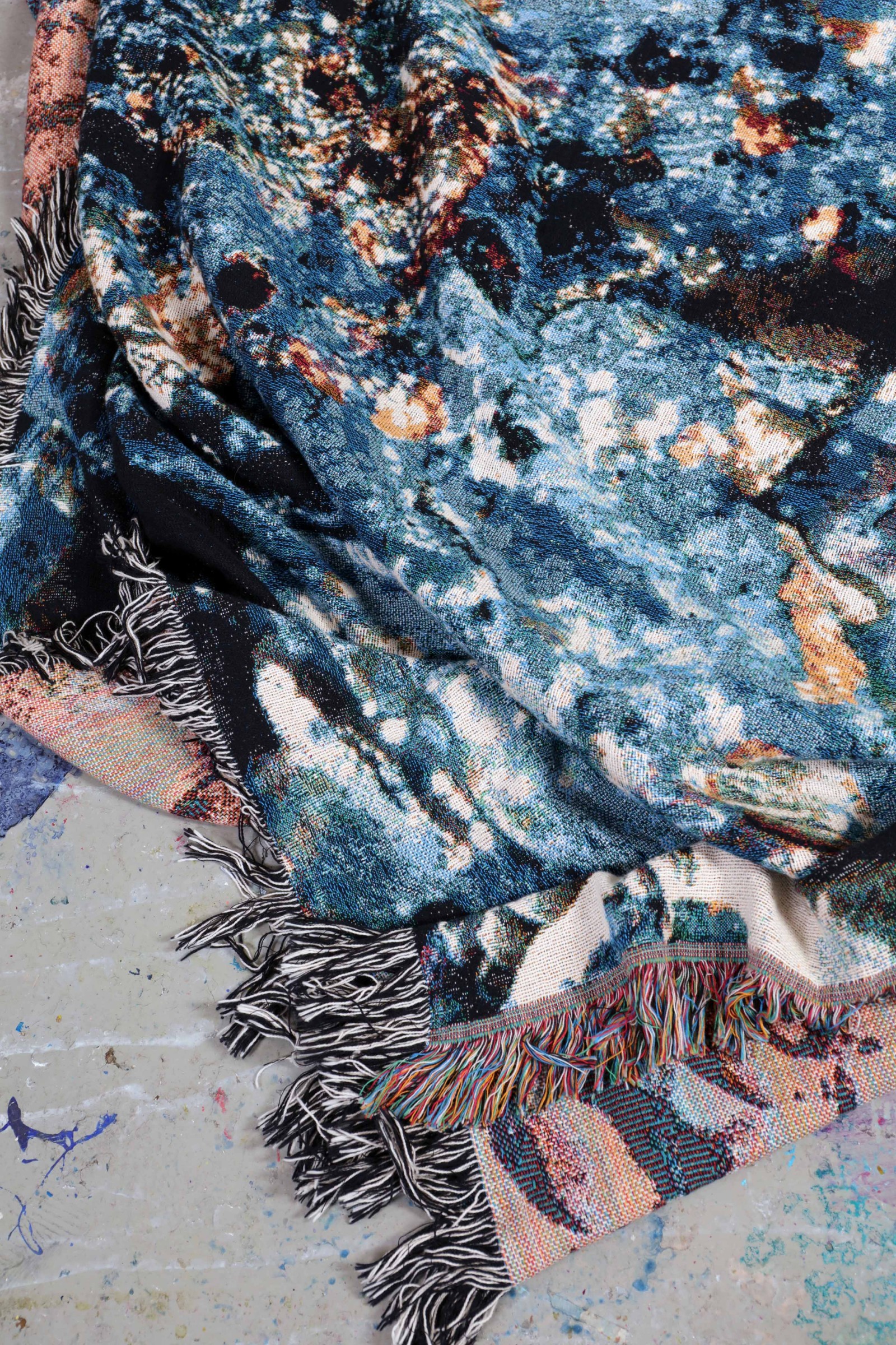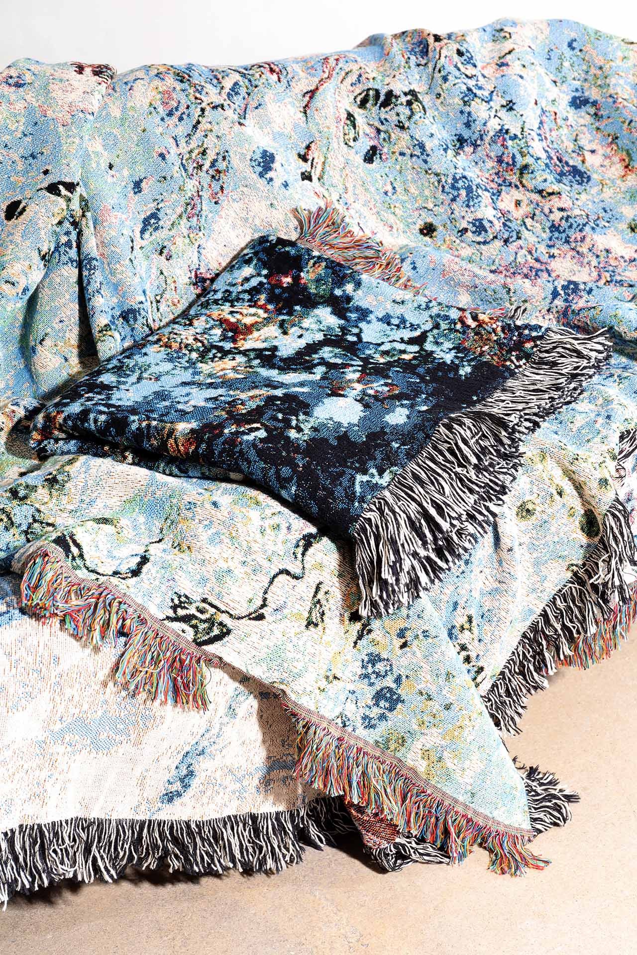 Ces couvertures en coton sont inspirées par mon amour des textiles et des matériaux organiques. À travers le tissage, mes images originales sont transformées et traduites dans une palette de couleurs plus douces, créant une atmosphère confortable et adaptée aux intérieurs.