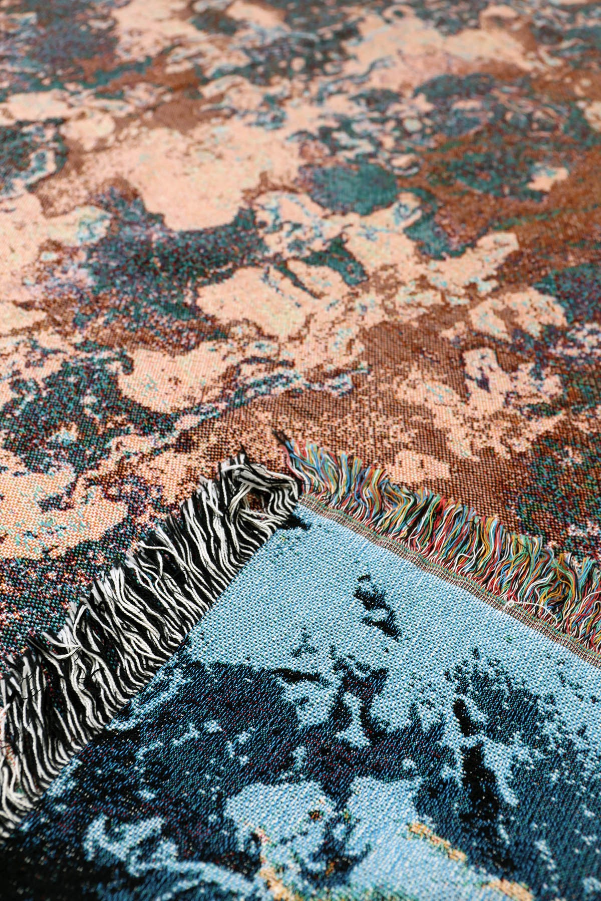 Ces couvertures en coton sont inspirées par mon amour des textiles et des matériaux organiques. À travers le tissage, mes images originales sont transformées et traduites dans une palette de couleurs plus douces, créant une atmosphère confortable et adaptée aux intérieurs.