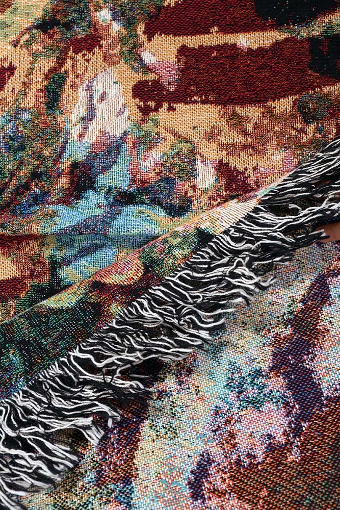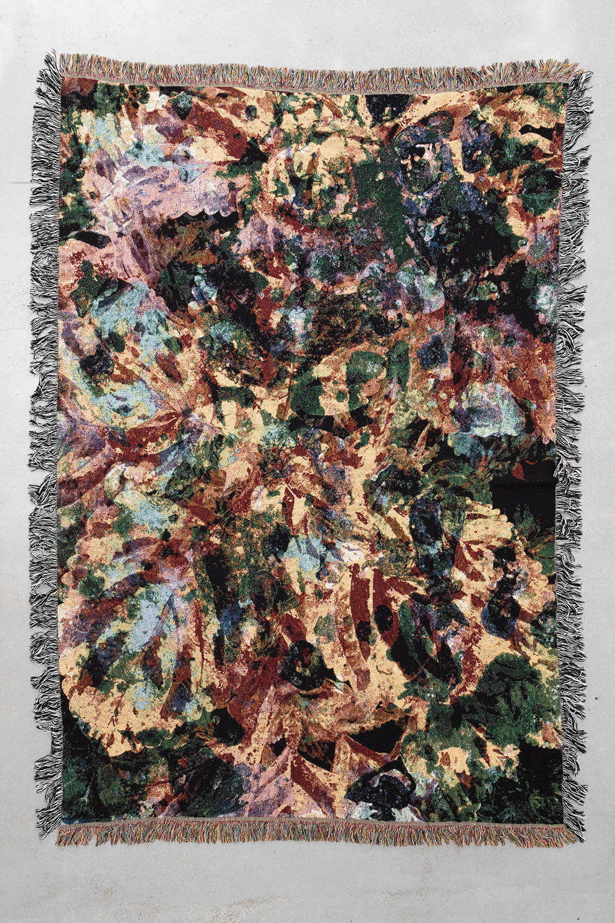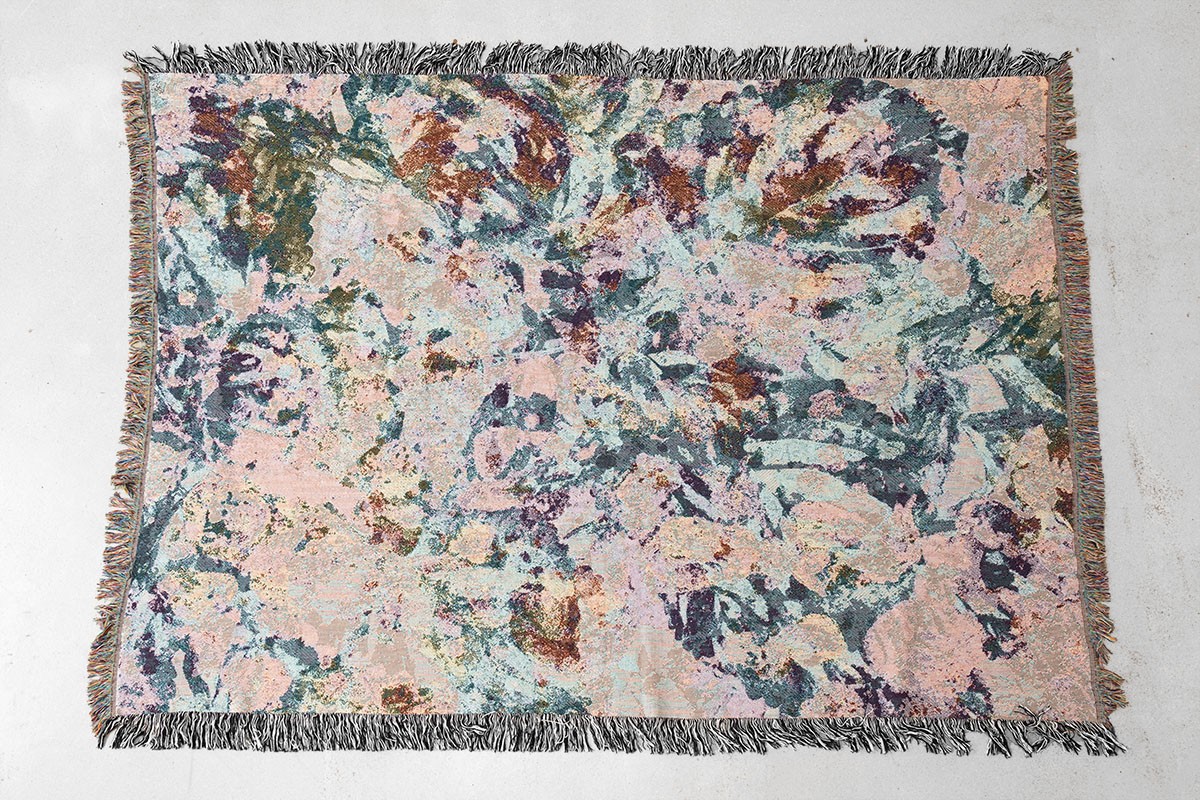 Ces couvertures en coton sont inspirées par mon amour des textiles et des matériaux organiques. À travers le tissage, mes images originales sont transformées et traduites dans une palette de couleurs plus douces, créant une atmosphère confortable et adaptée aux intérieurs.