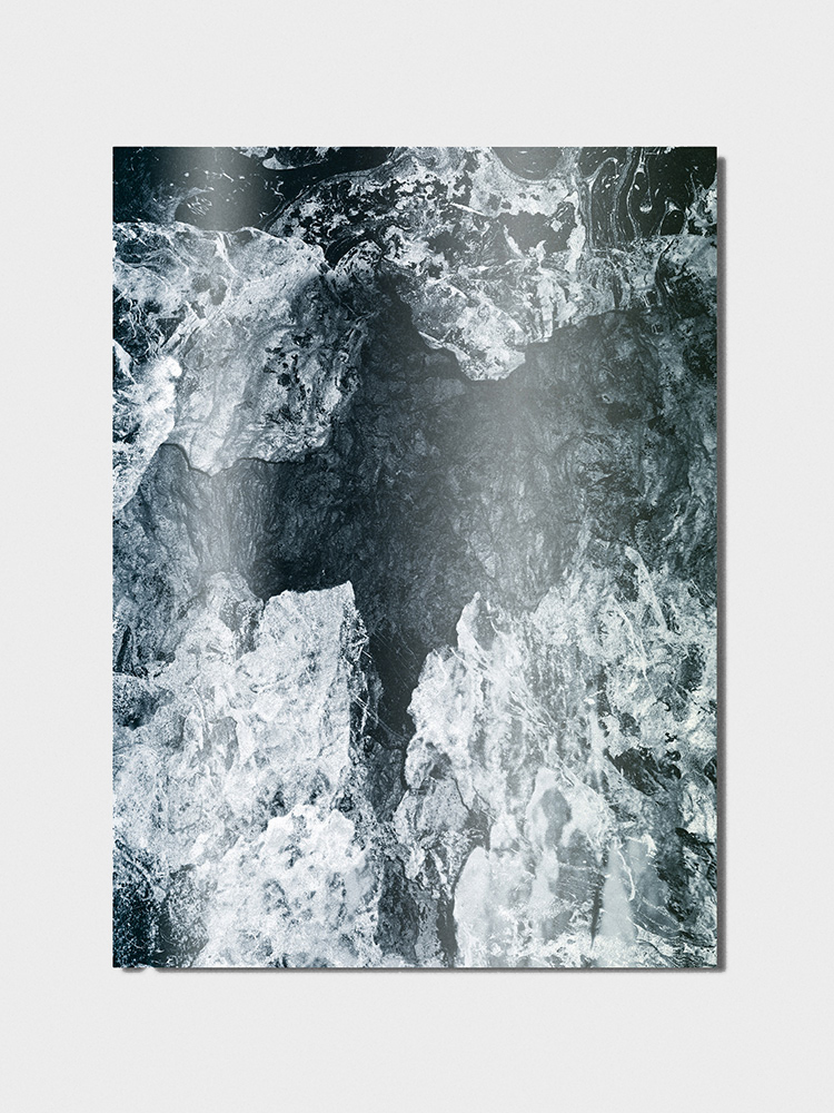 Le titre, A Rock is a River, reflète la matière brute que j'ai collectée pour créer le livre, dont une grande partie a été photographiée dans la vallée Verzasca en Suisse et dans d'autres paysages qui me sont chers, comme le Pérou, où vit mon père. Inspirée par la transformation de la matière dans la nature — les forces sculptantes de l'eau, les pierres façonnées par les rivières, les solides devenant liquides puis redevenant solides — j'applique des processus de changement et de superposition similaires dans mon travail. Le livre ne contient pas de texte et n'a pas d'ordre fixe, permettant au lecteur de naviguer à travers les images sans un début ni une fin conventionnels. Imprimées en couleur et en noir et blanc sur papier argenté, les pages interagissent avec la lumière, créant des ruptures physiques qui activent l'œuvre de manière dynamique et en constante évolution.