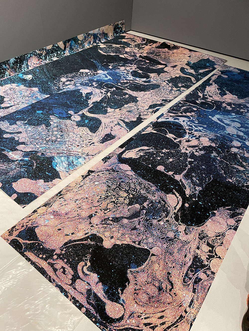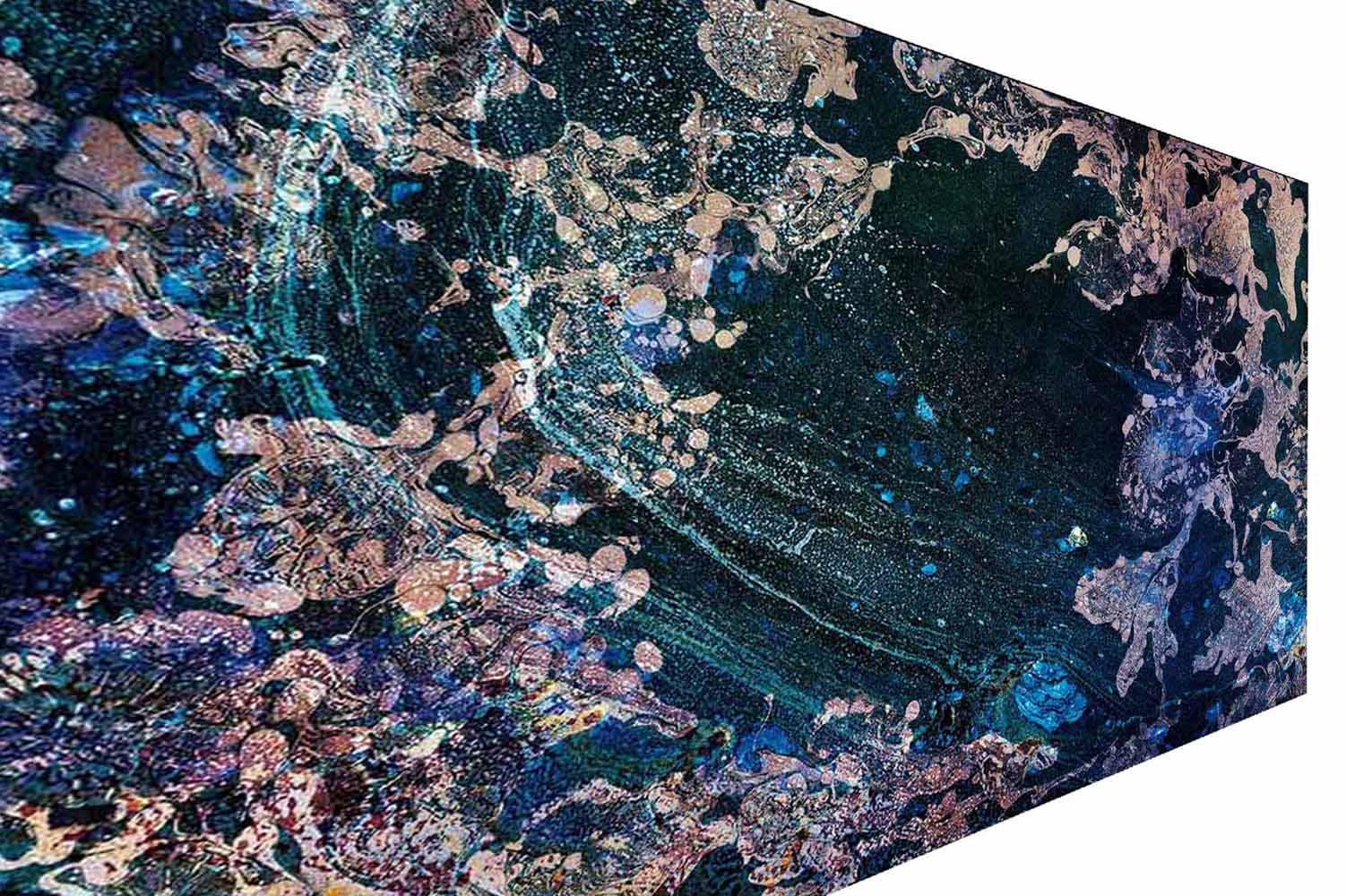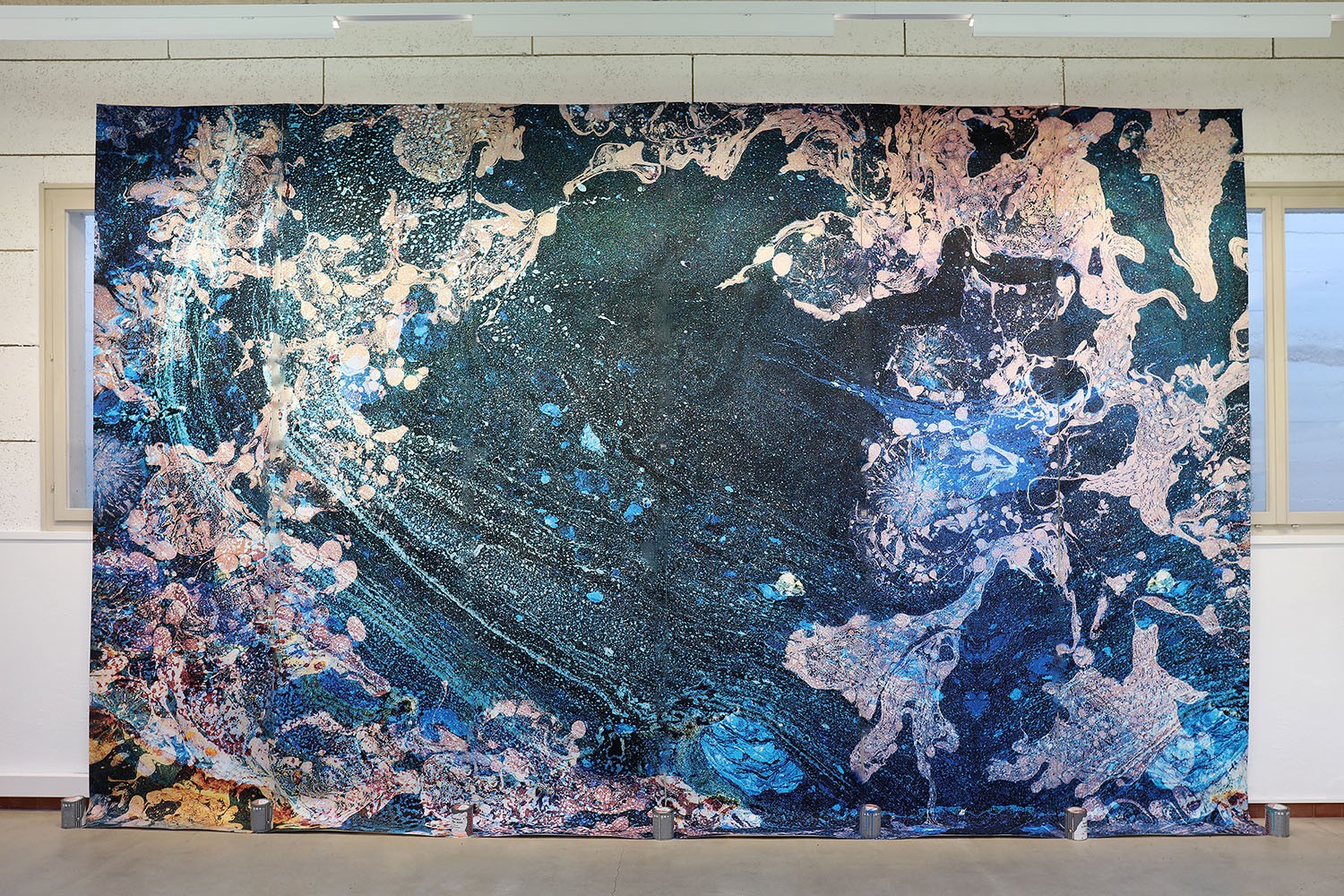 L’image de Nordsee est une photo de pétrole flottant sur l’eau prise à la mer du nord, surimprimée avec de la peinture à marbrerie.
