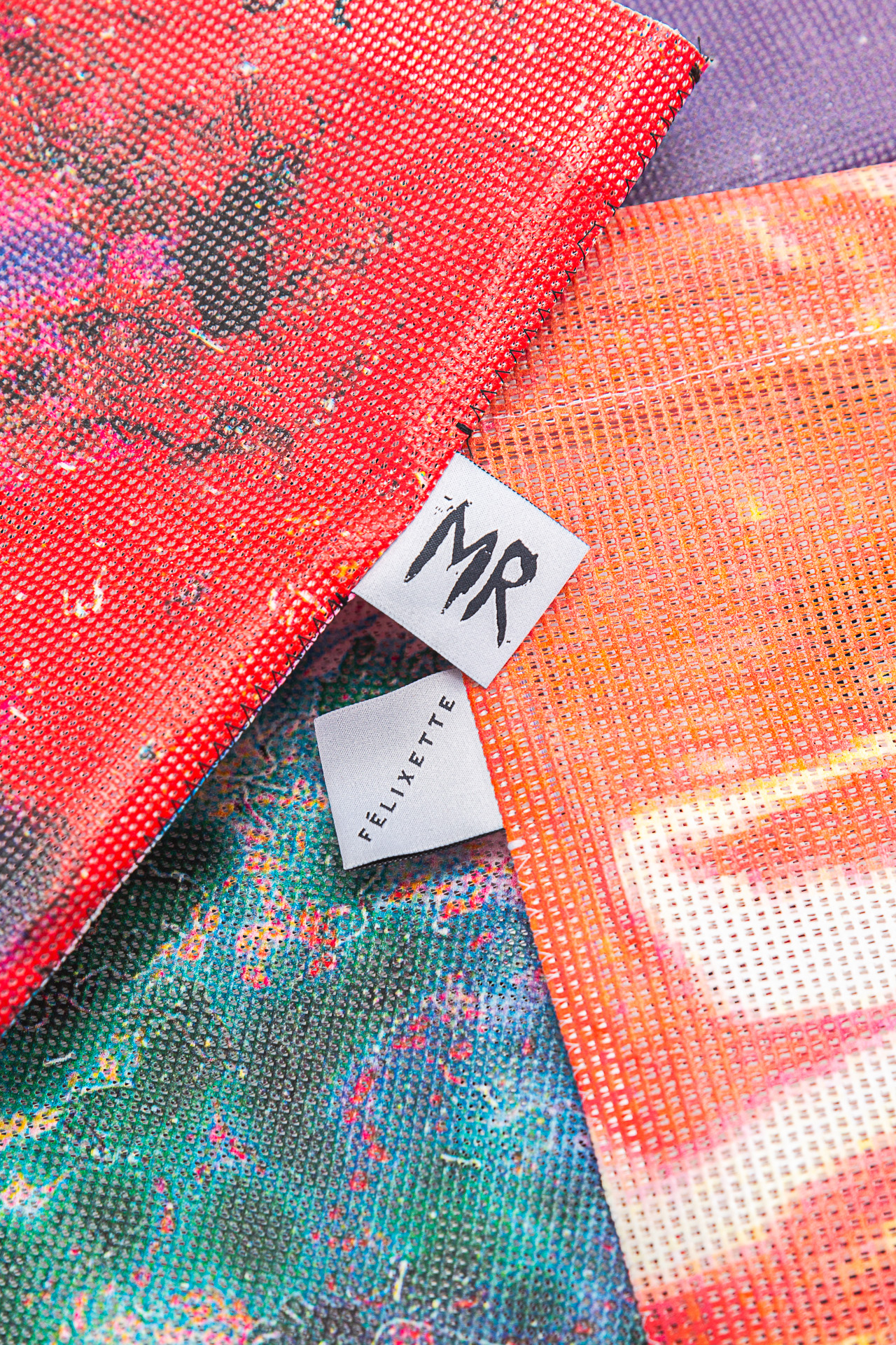 Une collaboration singulière entre la marque d’accessoires suisse Félixette et l’artiste Maya Rochat. Les pièces sont réalisées à partir de bâches issues des expositions de Maya Rochat, soigneusement sélectionnées par Salomé Félix parmi les archives de l’artiste, puis transformées dans son atelier à Vevey.