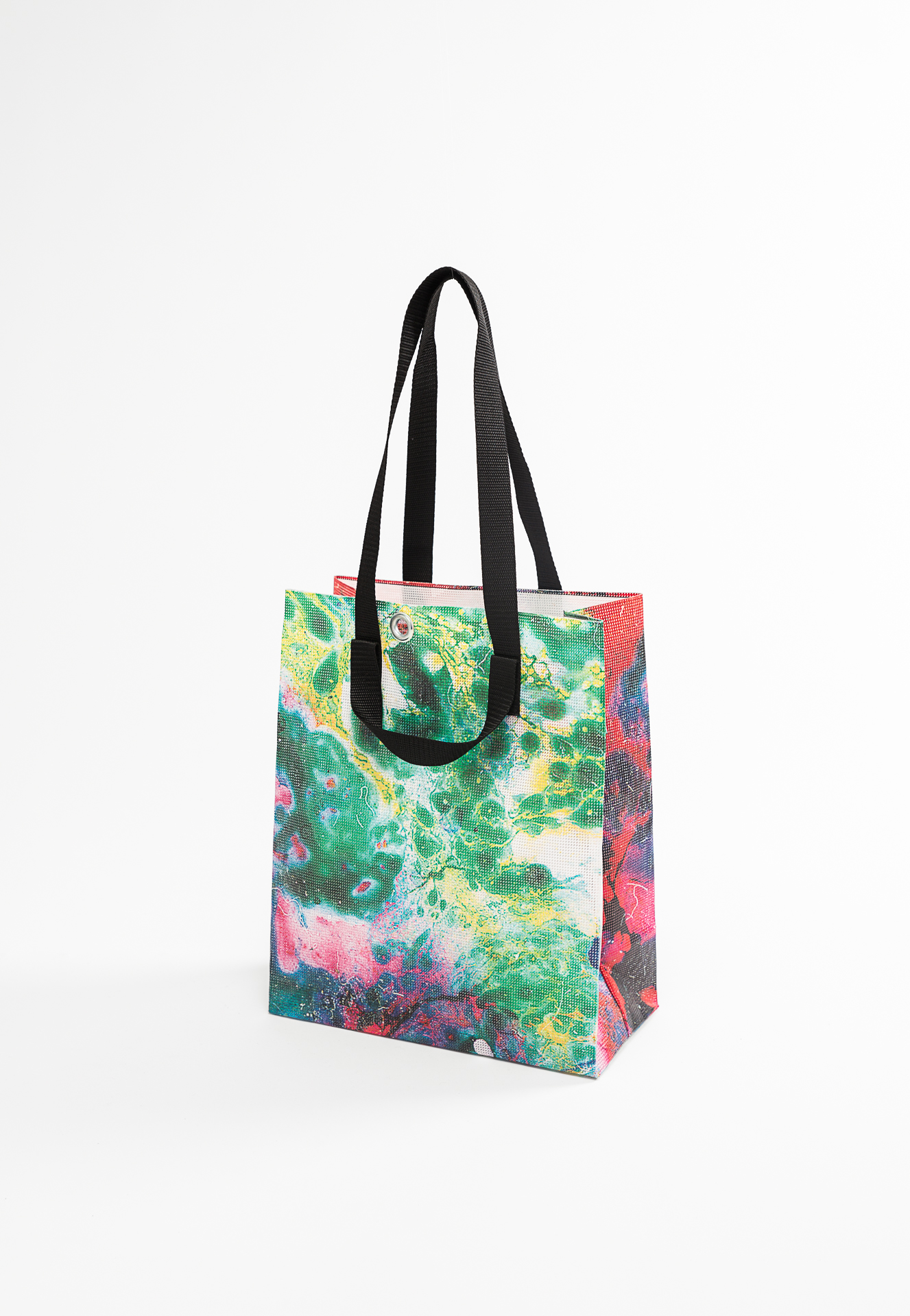 Une collaboration singulière entre la marque d’accessoires suisse Félixette et l’artiste Maya Rochat. Les pièces sont réalisées à partir de bâches issues des expositions de Maya Rochat, soigneusement sélectionnées par Salomé Félix parmi les archives de l’artiste, puis transformées dans son atelier à Vevey.
