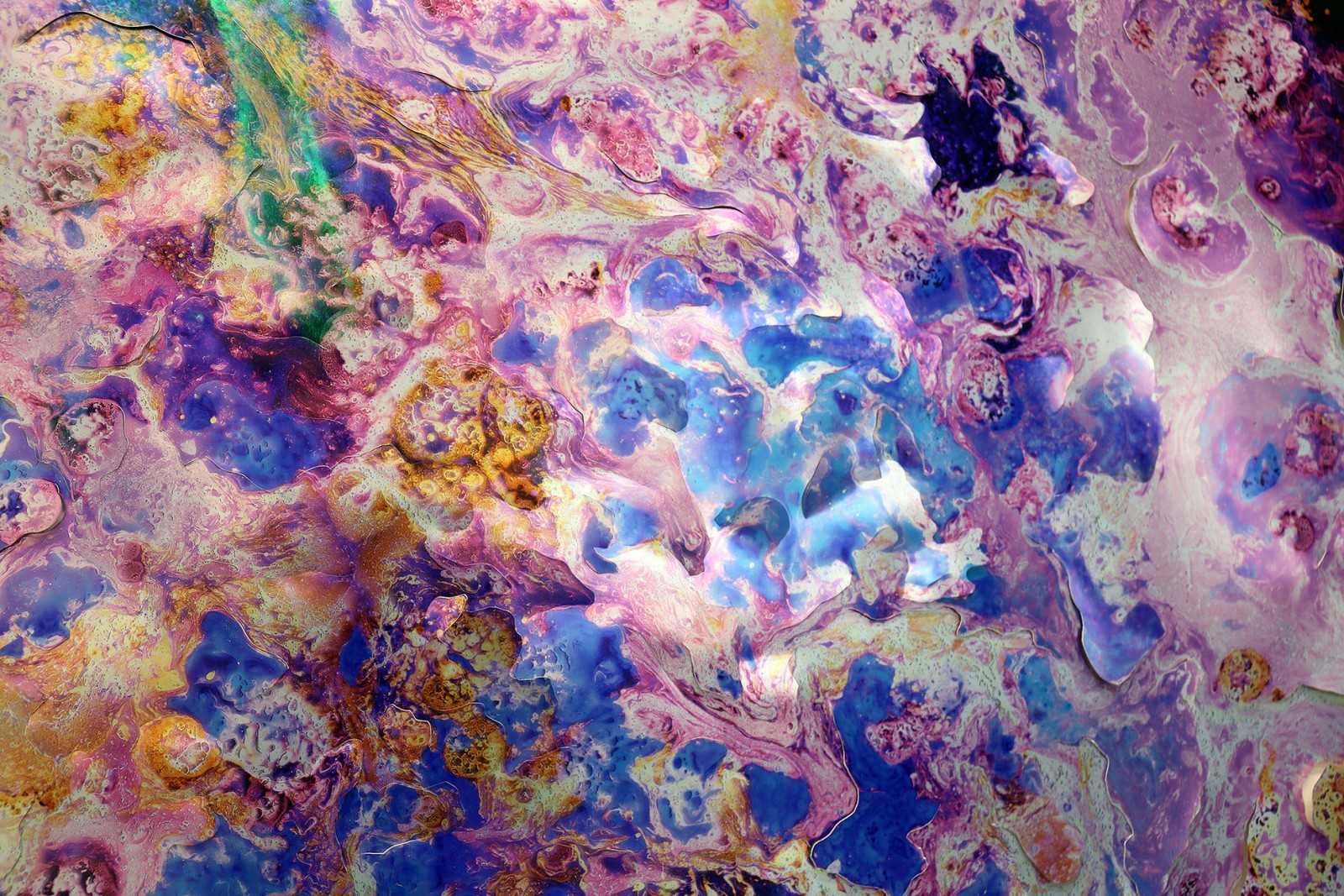 The Painting with Light series presents scanned and enlarged paintings, printed on metallised paper and meticulously reworked with hand-cut interventions. Each piece exists at the intersection of painting, photography, and sculpture.