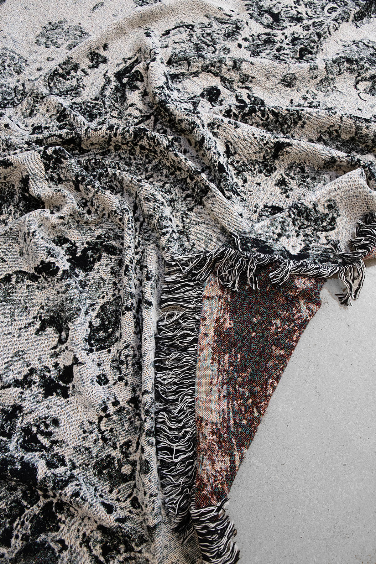 Ces couvertures en coton sont inspirées par mon amour des textiles et des matériaux organiques. À travers le tissage, mes images originales sont transformées et traduites dans une palette de couleurs plus douces, créant une atmosphère confortable et adaptée aux intérieurs.